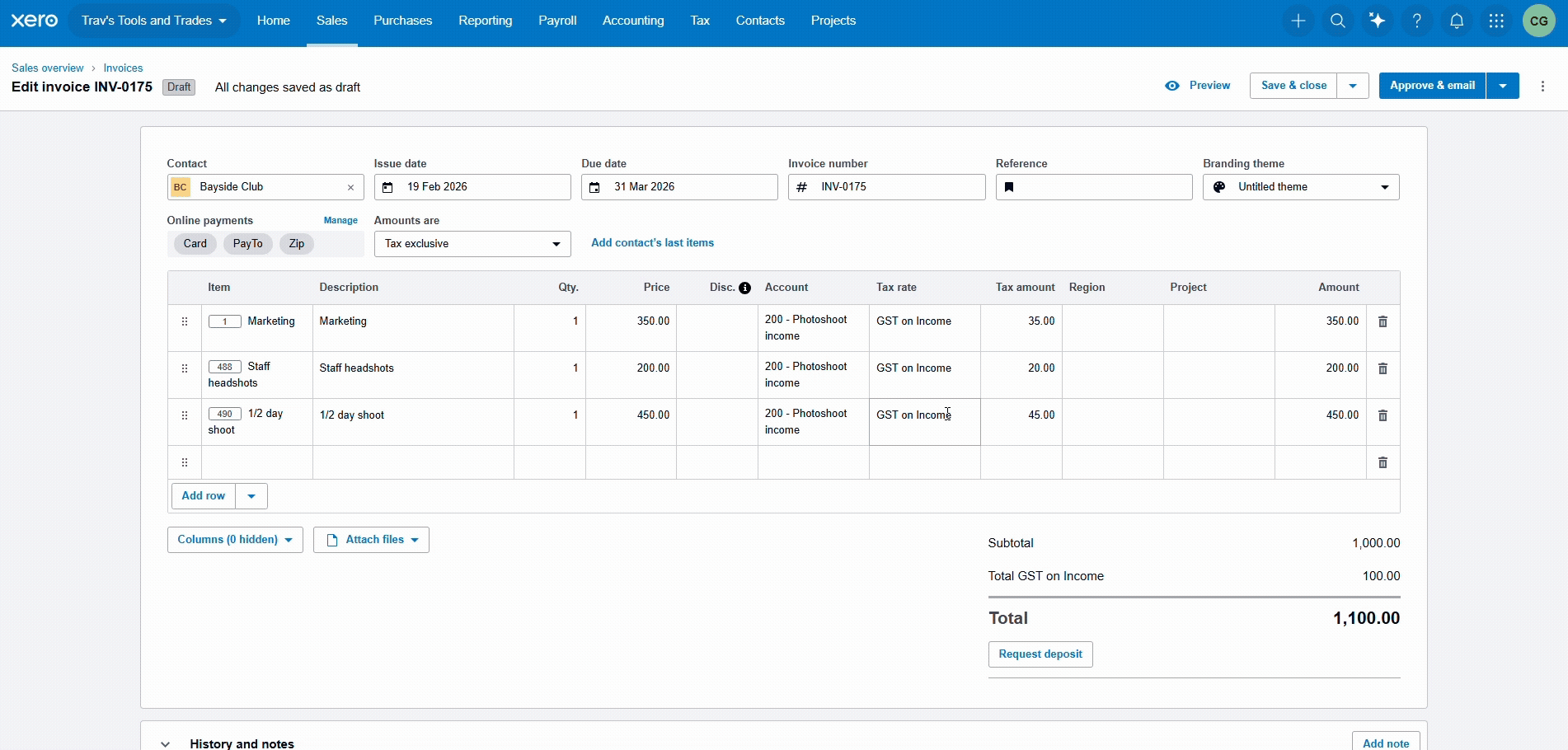 Get branded invoices, automatically. Upload your logo with the new invoice template editor and Xero pulls your brand colors to create professional invoices that speak your brand. Tweak fonts, rename columns, add payment details, and more – simple editing tools put you in charge, no designer required.