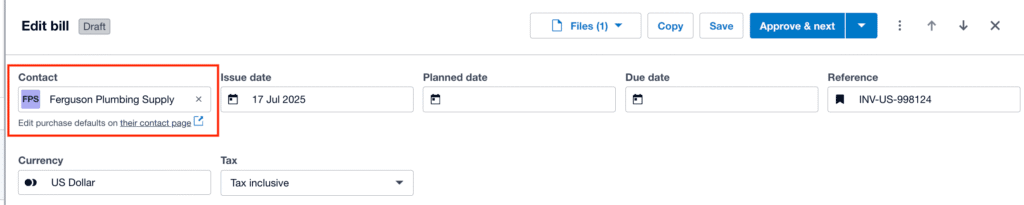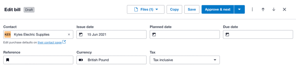 • Purchase defaults: You can now change your supplier’s purchase settings, specifying account codes, tracking categories, and more, streamlining your bill creation process – accessed via the “Edit purchase defaults on their contact page” link.