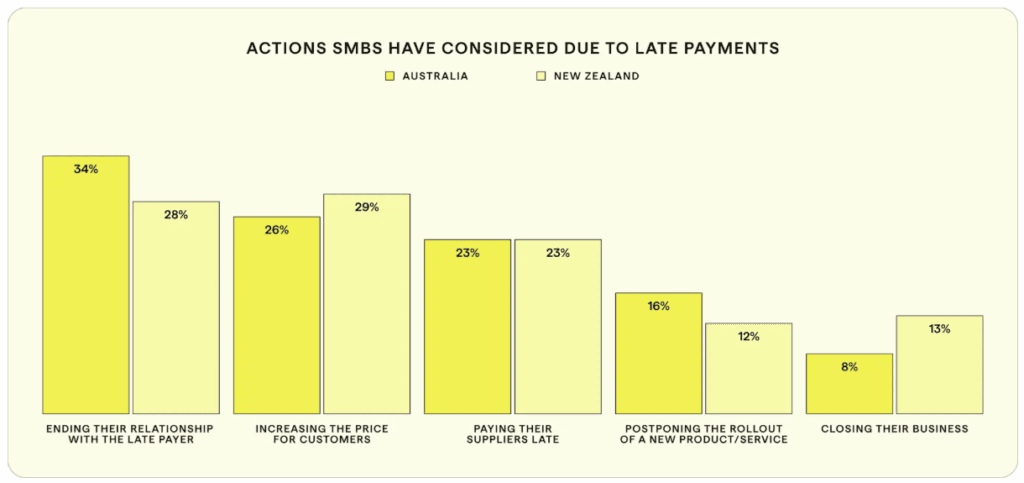 Delayed payments often mean poor cash flow and can result in businesses having to put a hold on future plans. Here are a few growth-stunting actions Australia and New Zealand SMBs have been forced to take due to late payments: